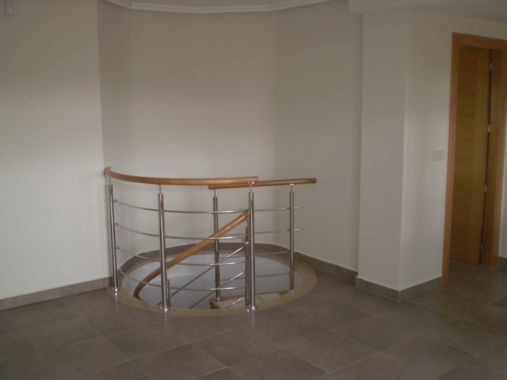 La vivienda tiene 100 m2 distribuidos en dos plantas. En la planta inferior, se encuentra el recibidor, la cocina totalmente equipada que cuenta con un pequeño lavadero, el salón, dos cuartos de baño y tres habitaciones. Una preciosa escalera de caracol conecta la planta inferior con la superior, donde podemos disfrutar de un amplio salón, un aseo y una espaciosa terraza con zona de barbacoa.
