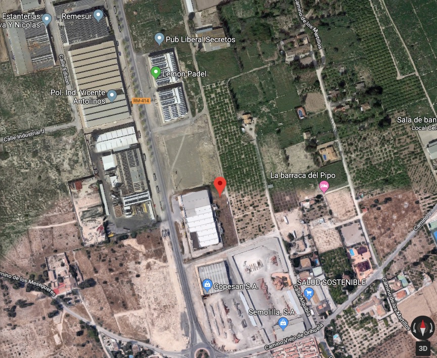 La parcela se encuentra ubicada en el sector urbanizable más próximo al Polígono Industrial Vicente Antolinos de Santomera (sector SM-8), junto a la depuradora. Muy bien ubicada ya que en tan solo unos minutos se puede llegar a la autovía que conecta Murcia con Alicante. Además el núcleo urbano de Santomera queda justo a la salida del polígono.